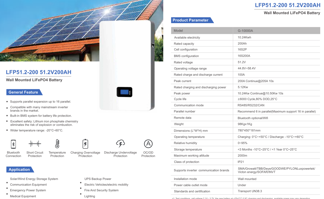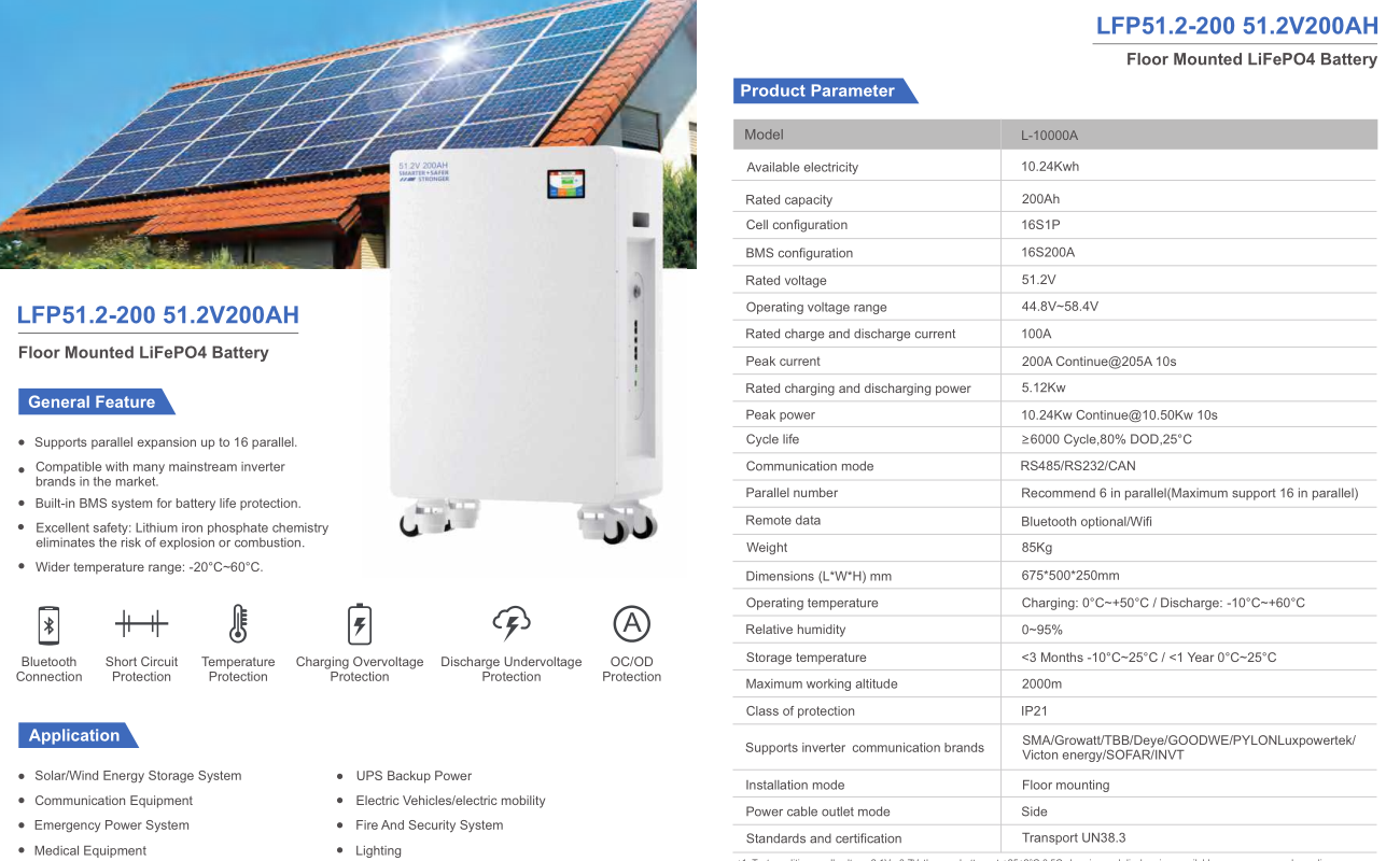 51.2V-100~200AH-5.12~10.24Kwh